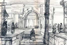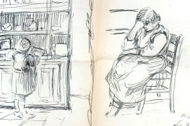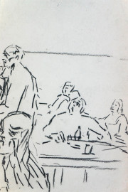Lotto composto da dieci schizzi, soggetti, tecniche e autori diversi, misure max cm 34x24, (difetti)