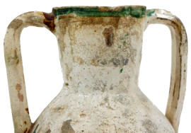 Lotto composto da due brocche biansate in maiolica policroma, vecchia manifattura, altezza max cm 35, (difetti)