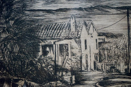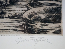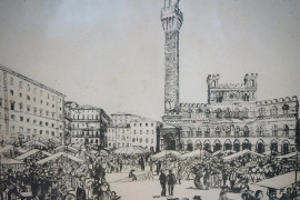 Lotto composto da due multipli su carta di autori diversi raffiguranti Siena ed esterno di casolare, misure max cm 42,5x56, entro cornici, (difetti).