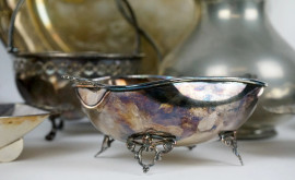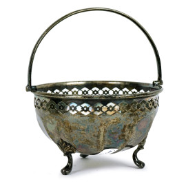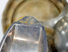Lotto composto da otto oggetti in metallo argentato, alt. max cm 15,5, (difetti)