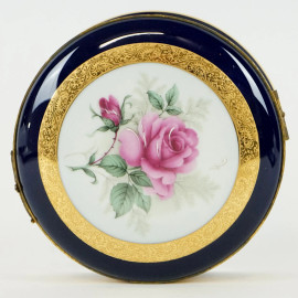 Lotto composto da un portagioie in porcellana Limoges ed un cofanetto in cristallo controtagliato, misure max cm 4,5x14, XX secolo.