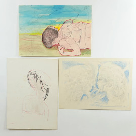 Lotto composto da una prova d'autore e due tecniche miste su carta e cartoncino, soggetti e autori diversi, misure max cm 70x50, (lievi difetti)