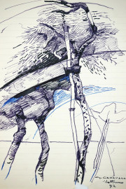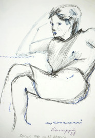 Lotto di dodici disegni e bozzetti a tecnica mista su supporti diversi, misure max cm 42,5x31,5, firmate Gustavo Canevacci, (difetti).