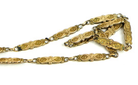 Lotto di due catenine in metallo dorato, lunghezza cm 43,5.