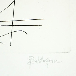 Marinetti domani, lotto di due litografie, cm 35x25, ES.58/100 e 79/100, firmate Baldassarre.