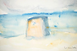 Lotto di quattro disegni ad acquarello e matita su carta raffiguranti scorci di paesaggi e figura, misure max cm 23x17,5.