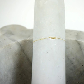 Mortaio con pestello in marmo, cm 11,5x26, XX secolo, (difetti)
