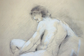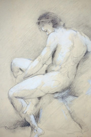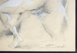 Nudo, tecnica mista su carta, cm 23,5x19, firmato, entro cornice in radica.