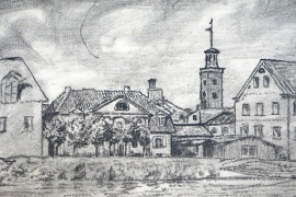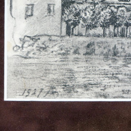 Paesaggio, carboncino su carta, cm 16x22,5, siglato A. B.