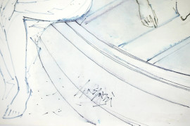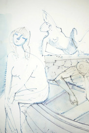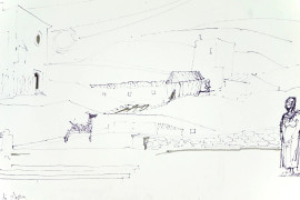 Paesaggio di Spagna e Gruppo assorto, lotto di due disegni a china e pennarello su carta, misure max cm 24x34, firmati Gasparri, (lievi difetti sulla carta).