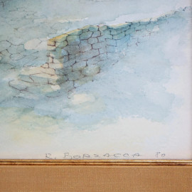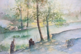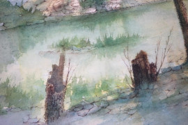 Paesaggio fluviale, acquarello su carta, cm 26,5x36,5, firmato e datato R.Borzacca '80, entro cornice.