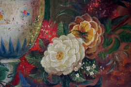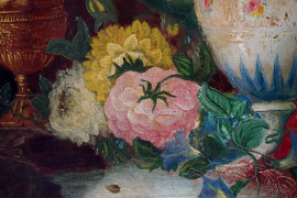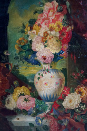 Pittore del XIX secolo, Vaso con fiori, olio su tela, cm 98x80.