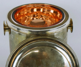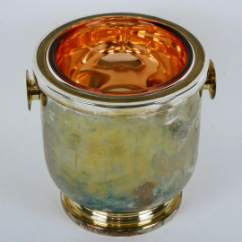 Portaghiaccio in metallo argentato, con vaschetta interna in vetro, XX secolo, cm h 20