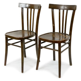 Quattro sedie in noce, prima metà XX secolo, con schienali a giorno, cm h 85,5, (difetti)