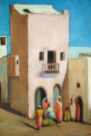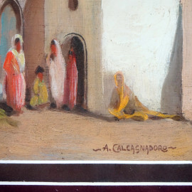 Scena araba, olio su tavola, cm 21x24, firmato, A. Calcagnadoro