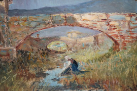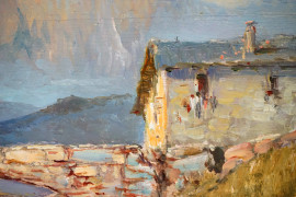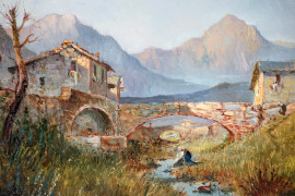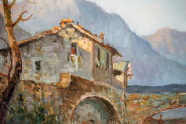 Scorcio di paese montano, olio su compensato, cm 50x70, firmato G.Cappalesora, entro cornice.