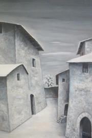 Scorcio di paese, olio su tela, cm 40x30, firmato, entro cornice.