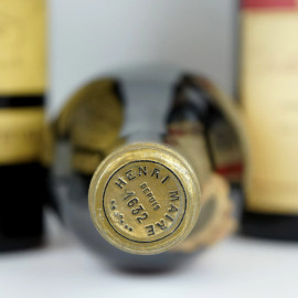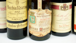 Selezione di 9 bottiglie di vino bianco e rosso ed 1 bottiglia di Whisky, (difetti)