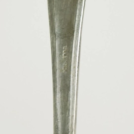 Servizio di posate in metallo argentato, composto da 12 forchette, 12 cucchiai, 12 coltelli, 8 cucchiaini, un mestolo, una paletta da dolce, e due posate da portata, (servizio incompleto)