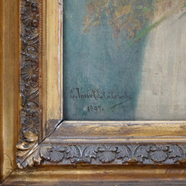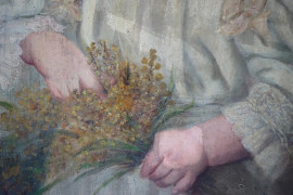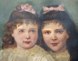 Sorelle, olio su tela, cm 73x60, firmato e datato, entro cornice, (difetti)