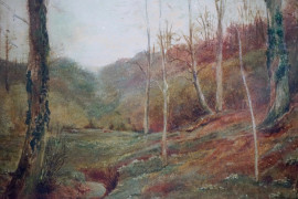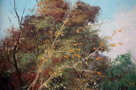 Sottobosco, olio cartone, cm 19x22,5, firmato F. Rossano, entro cornice