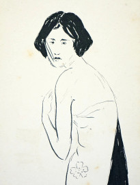 Studio di ragazza, penna su carta, siglato P.S., cm 22x15