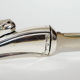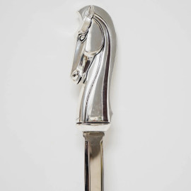 Tagliacarte Pierre Cardin laminato in argento, presa a testa di cavallo, lunghezza cm 25