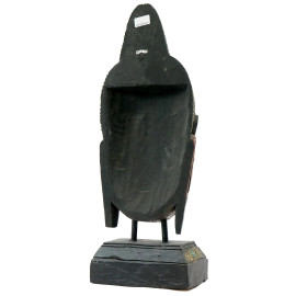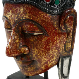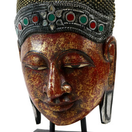 Testa di Buddha, scultura in legno dipinto e parzialmente dorato, arte orientale, XX secolo, cm h 94