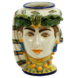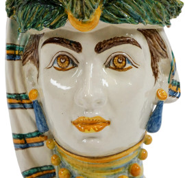 Testa di moro in ceramica policroma Caltagirone, cm h 39, XX secolo.