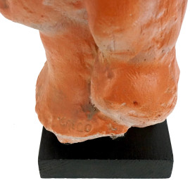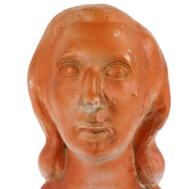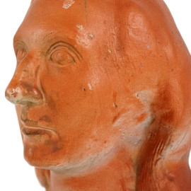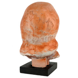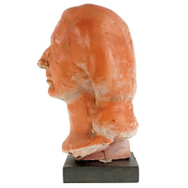 Testa femminile, scultura in gesso dipinto, cm h 31,5, firmata, base in legno, (difetti)
