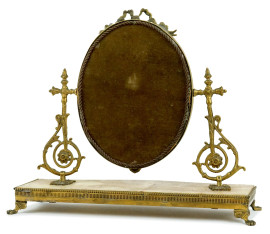 Toeletta da comò in bronzo e marmo, cm h 33, inizi XX secolo, (difetti).