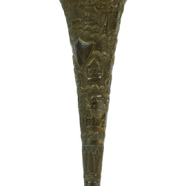 Vasetto in metallo argentato, decori incisi e sbalzati, XX secolo, cm h 21,5.