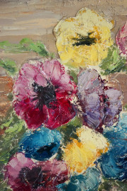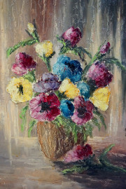 Vaso con fiori, olio su tavola, cm 53x46,5 circa, firmato, entro cornice.