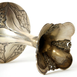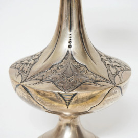 Vaso stile Liberty in argento inciso e cesellato, cm h 28, gr 566