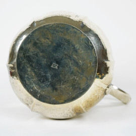 Versatoio in argento martellato a mano, corpo costolonato, presa sagomata, cm h 17,5, peso gr. 716
