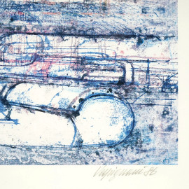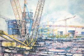 Il cantiere, litografia, cm 50x70, ES.89/150, entro cornice.
