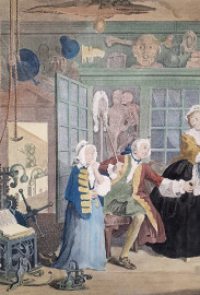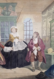 William Hogarth (1697-1764), Marriage alla mode - Plate 3, dis. W. Hogarth, engraved T.Cook, antica incisione acquarellata, cm 50x60