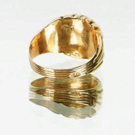 Anello in oro basso con cavallo inciso e smaltato, peso gr.2,5, (difetti)