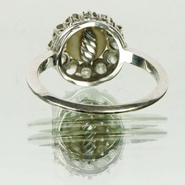 Anello in oro bianco 18 KT con perla e dodici brillantini, peso gr.4,6