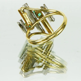 Anello in oro giallo e bianco 18 KT con due smeraldi, peso gr.5,1