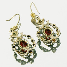 Antico paio di orecchini in oro basso e argento con granati e zirconi, peso gr.6,5