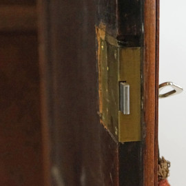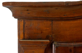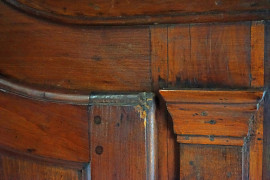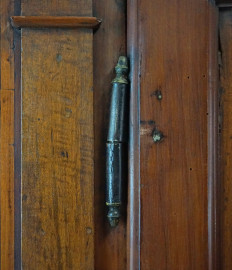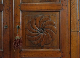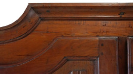 Armadio in noce, XIX secolo, a due ante pannellate con fiori scolpiti, cm h 196x139,5x47,5, (difetti)