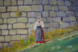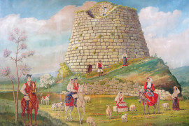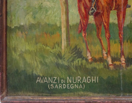Avanzi di nuraghi con figure, olio su tela, cm 148,5x200, firmato A.Bottazzi, entro cornice