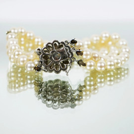 Bracciale a tre fili di perle, con chiusura in oro bianco, lunghezza cm 19,5