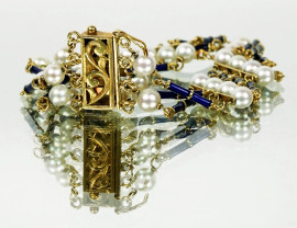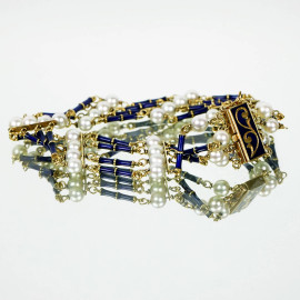 Bracciale in oro giallo 18 KT con smalti e microperle, peso gr.21
