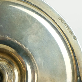 Bugia in argento Frugoni, prima metà del XX secolo, presa zoomorfa, profilo a foglie lanceolate, cm h 7x11, gr. 110