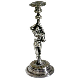 Candelabro finemente lavorato, Vienna, fine XIX secolo, provenienza antiquario romano, in peltro e bronzo argentato, altezza cm 33