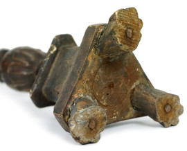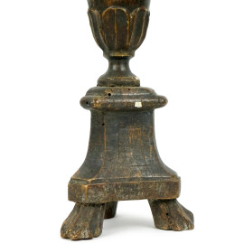 Candeliere in legno scolpito ed intagliato, XIX secolo, cm h 41,5