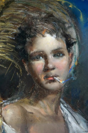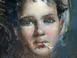 Scugnizzo, pastello su carta applicata su tavola, cm 60x50, entro cornice.
