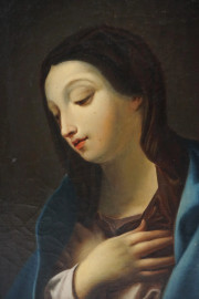 Carlo Dolci (1616-1686) seguace di, Madonna, olio su tela, cm 49x38, entro cornice.